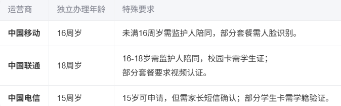 部分运营商要求签署《监护责任承诺书》或《低龄用户办理号卡申请单》。
