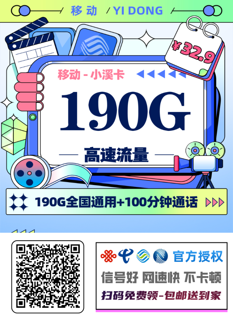 🚀移动小溪卡【四川专属】 32.93元/月享190G全国通用+100分钟通话+会员权益N选1